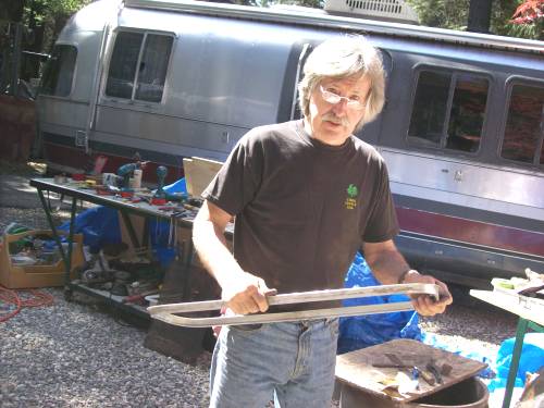 New Quarter Panel Another View of Rear Quarter Panel Old Quarter Panel Front Window In The Works Small Windows In The Works Pete Working on One of the Small Windows Fixed the Roof Vents Another Roof Vent Fixed New Battery New Cables Looking for New Parts Lower Quarter Panel In The Works Lower Quarter Panel (Other Side) In The Works Research ... Looking For Parts Jacki ! Here's The New Toilet Lower Quarter Panels have arrived. They are Plastic and the color black. We will paint them to match the trailer. Aluminum Quarter Panels are no longer made. Even the new trailers quarter panels are made from plastic. Removed Tires to inspect the brakes. Bad Parts All Fixed Tires Back On New Door Latch The New Cargo Door. We took the lock out of the old one so your keys would fit. Will put the door on next week. Front Window Complete Antenna Removed Photo Shows Interior Antenna Hole Patch New Gas Bottles & Filled with Propane (You are Ready!) Reflector Lights all Working |