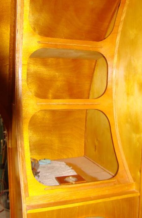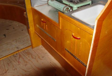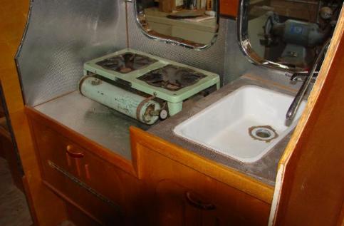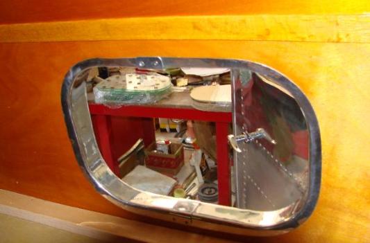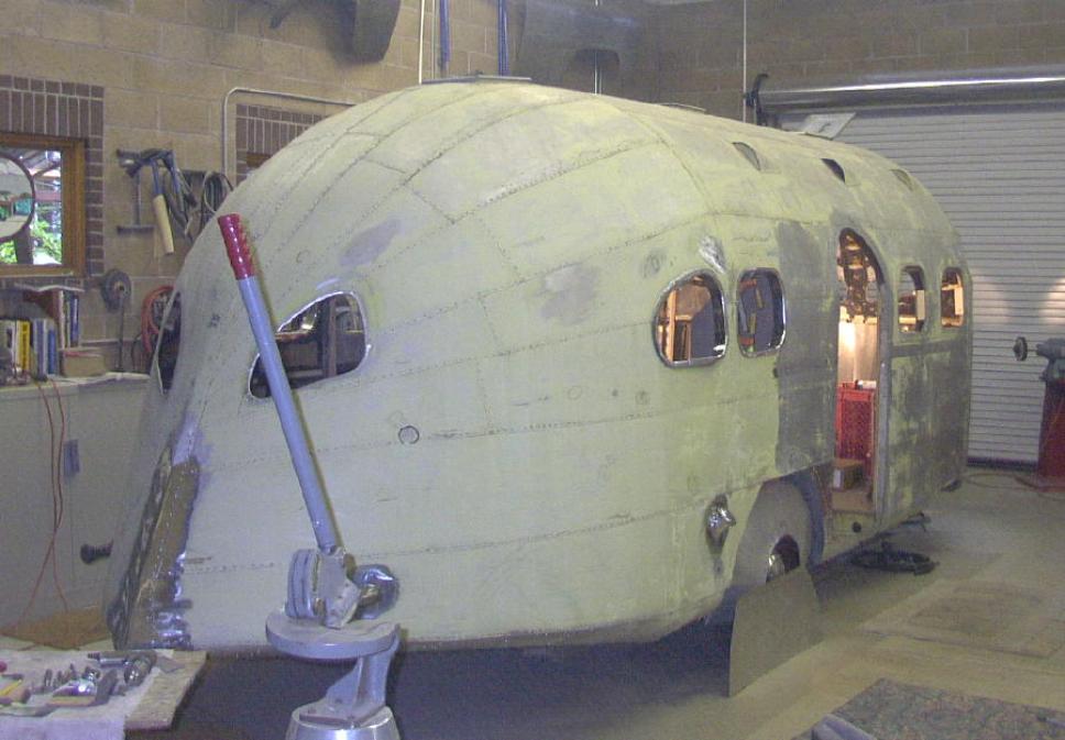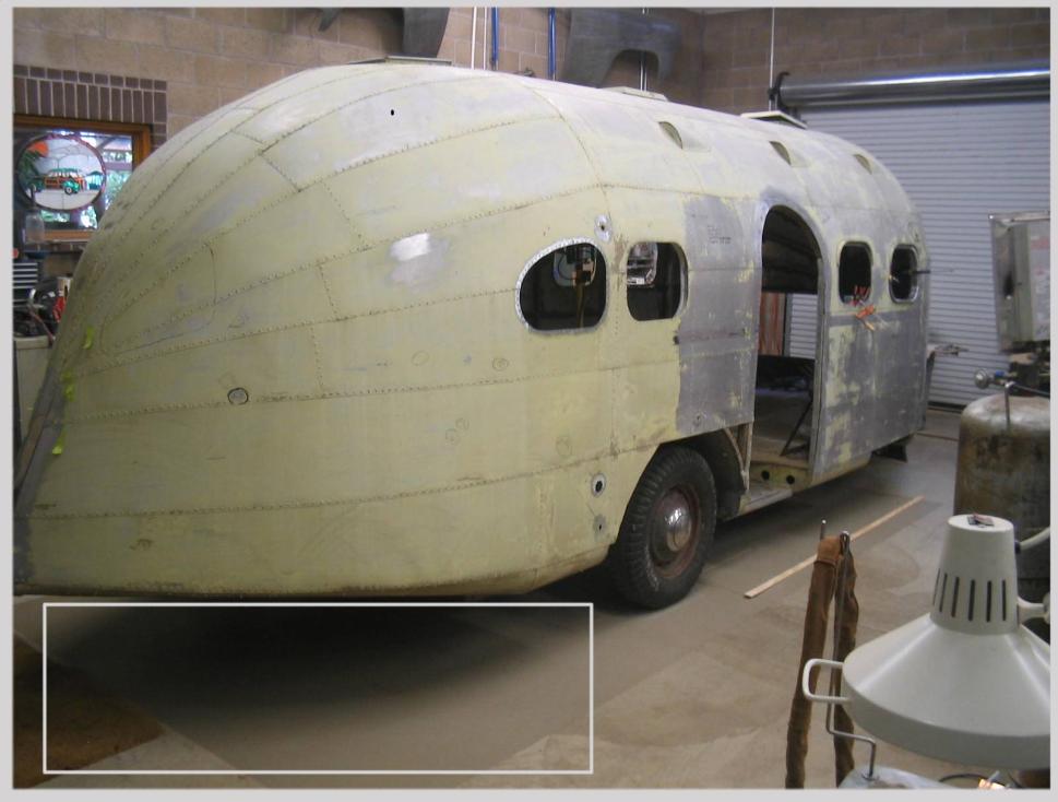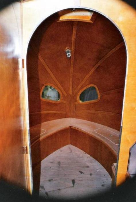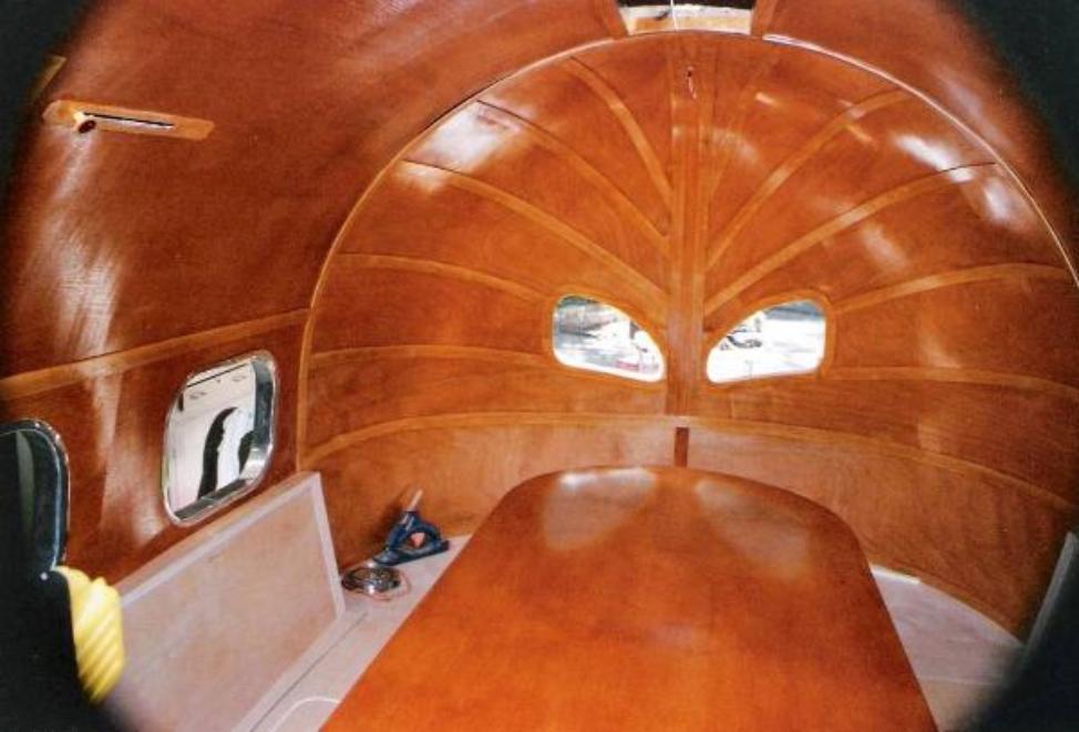 | The Body resembles a 1936 Airstream Clipper and it is the only one known.  The Keyhole is part of Vince Marticino's Collection. The interior is unique because of the "Keyhole" dividing wall between the Living Room and the Kitchen. Photo shows the Passenger Side of Finished Dining Area |
