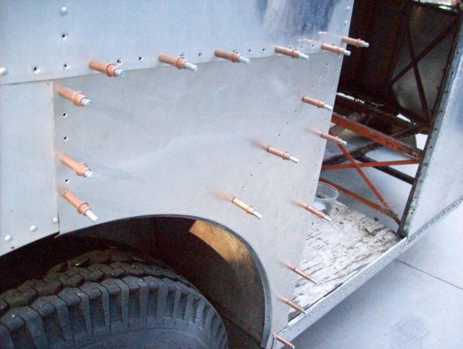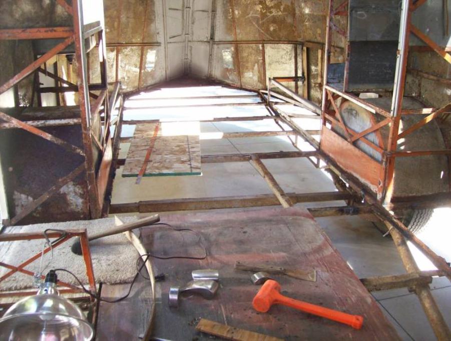| Baton Boards and a Whole Lot of Shellac Going On. (Rear of Trailer)