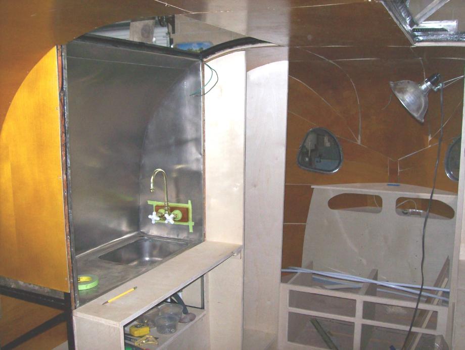 | A Little Bit Further on the Bed Platform + Openings for the Drawers On the Left is the Original Kitchen Cabinet Moved Back In