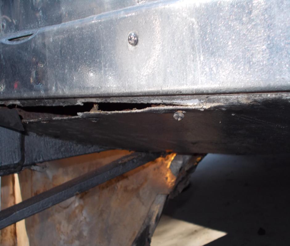 | Q - How did this trailer get so damaged? A - Unknown to the buyer, this trailer had structural damage. Damage masked by Caulking. Removal of the the Caulking revealed the water damage source. |