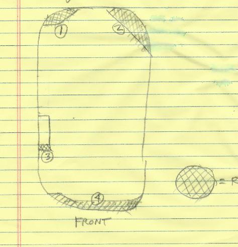 | Diagram of Bambi's Wood Rot Areas. XXX = Rot |
