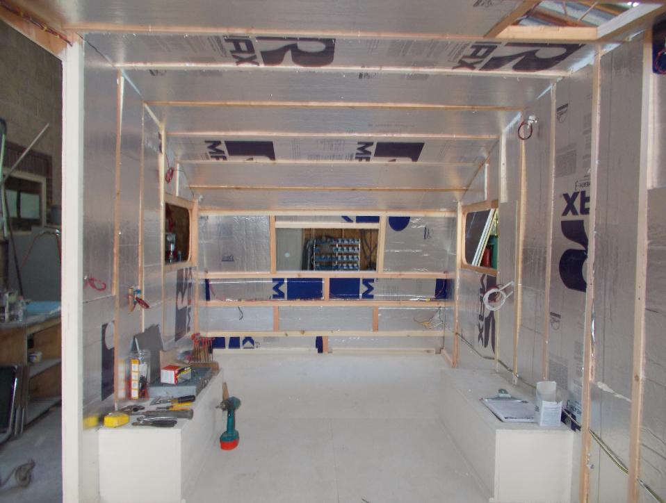 | Wheel Well Covers Complete / 2 Coats of Paint on Floor / Insulation Under Way / Window Openings Made |